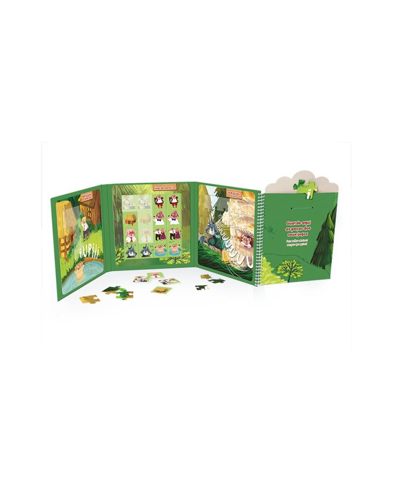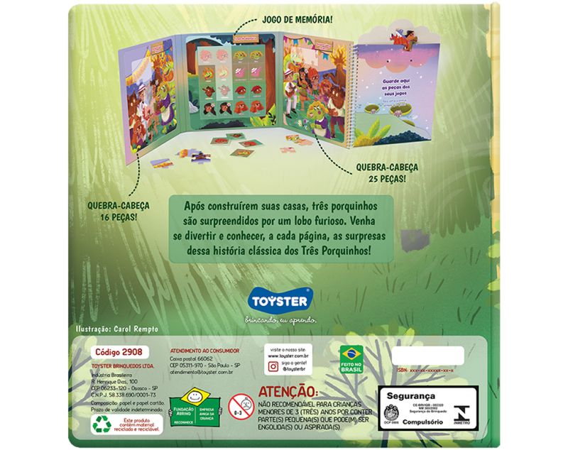 Livro Brinquedo que acompanha 1 quebra-cabeça com 16 peças + 1 quebra-cabeça com 25 peças + 1 jogo de memória É uma forma de aprender e brincar ao mesmo tempo! Dimensões 22,5x23,0x2,5 Certificação: INMETRO Idade recomendada: 4 anos