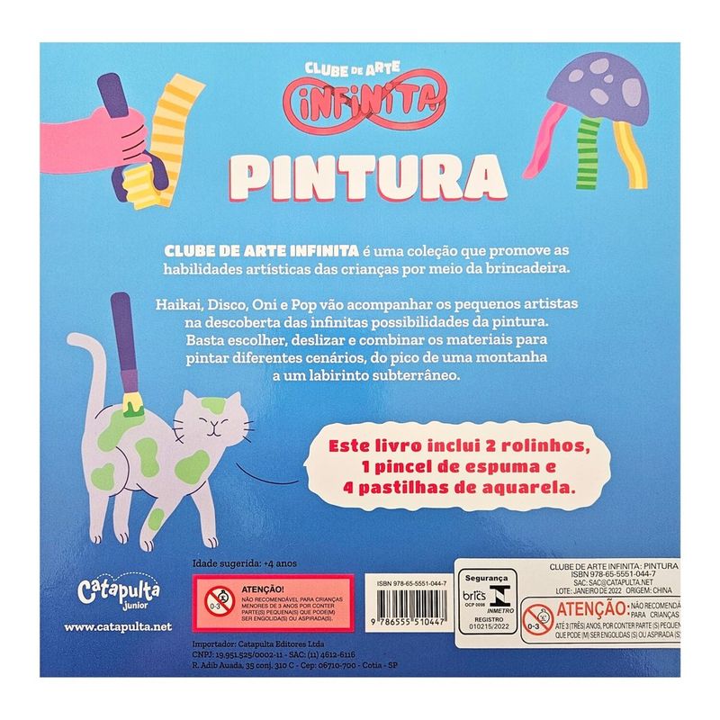 Haikai, Disco, Oni e Pop vão acompanhar os pequenos artistas na descoberta das infinitas possibilidades da pintura, do contato inicial com o material até a composição de traços e cores. Ao chegar à última página, as crianças podem começar de novo e repetir os mesmos passos fora do livro, obtendo resultados diferentes, mas divertindo-se como se fosse a primeira vez.