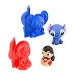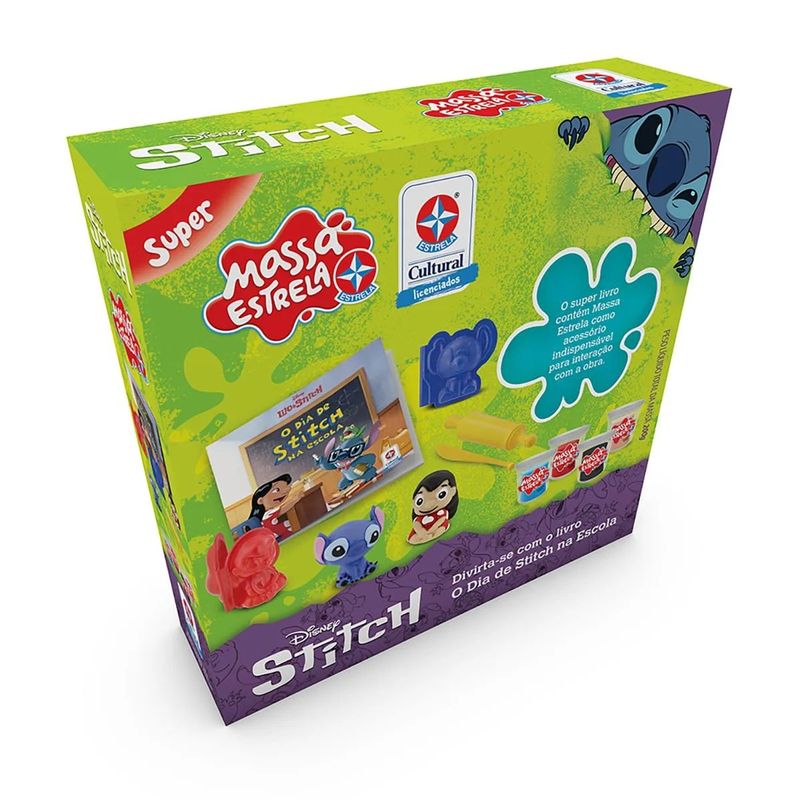 O livro “O Dia de Stitch na Escola” mostra as aventuras de Stitch no dia do Pet da escola que Lilo estuda.Além da história exclusiva, o kit conta com 2 moldes 3D dos personagens Lilo e Stitch, além de faca e rolinho e 4 potes de 50g de Massa Estrela