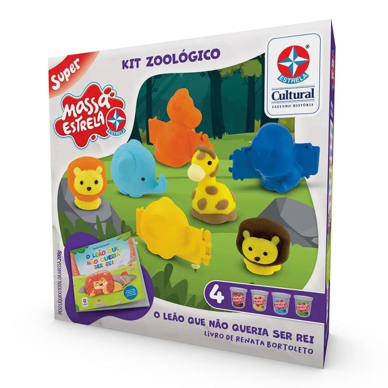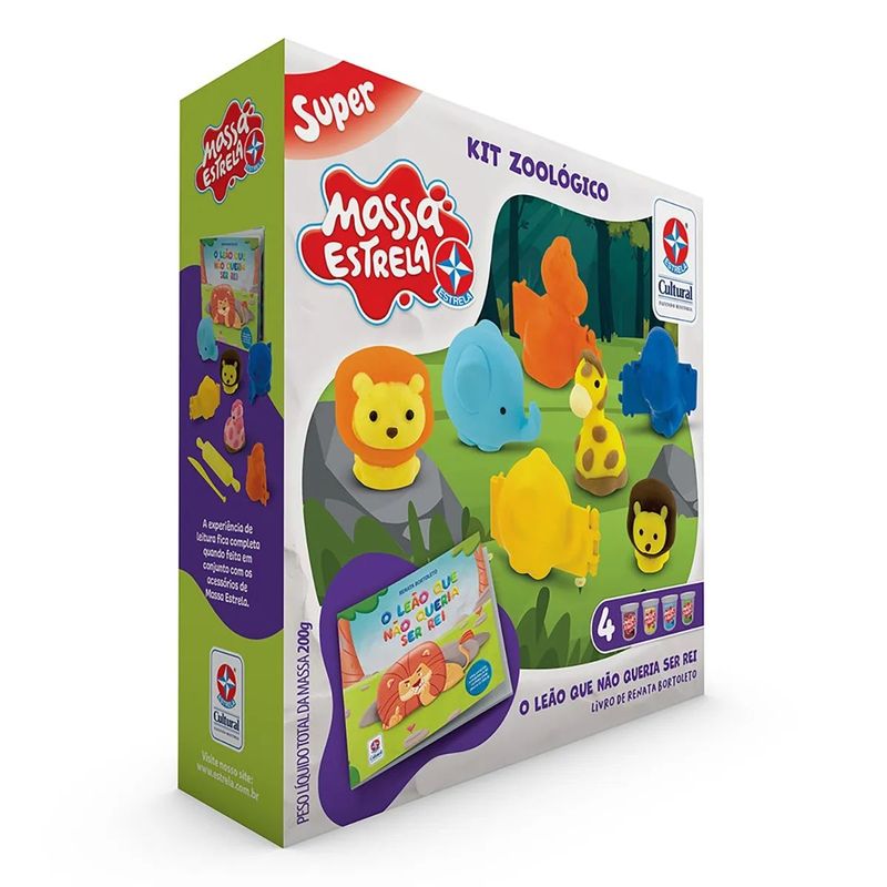 O Livro O Leão Que Não Queria Ser Rei conta a história de Astrogildo, um leão que cansou de reinar sua selva.O livro acompanha 3 moldes 3D de animais, incluindo um leão, uma girafa e um elefante, faquinha, rolinho, 4 potes de Massa Estrela de 50g e um cenário cartonado.