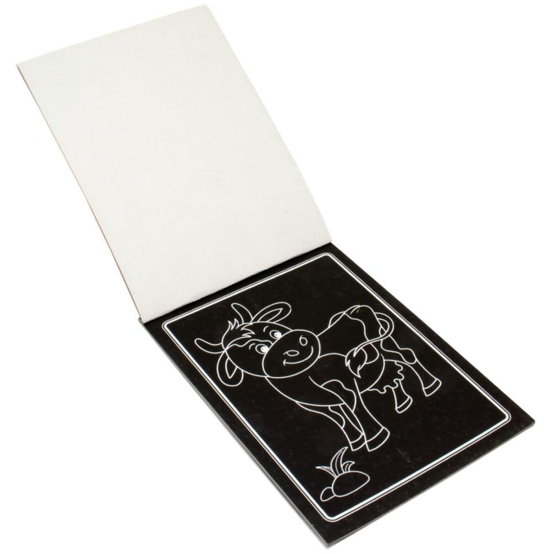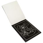 Acabamento: Brochura c/hot stamping, páginas de cartão preto (tipo raspadinha). Acompanha um palito plástico. Embalagem com fechamento em adesivo.