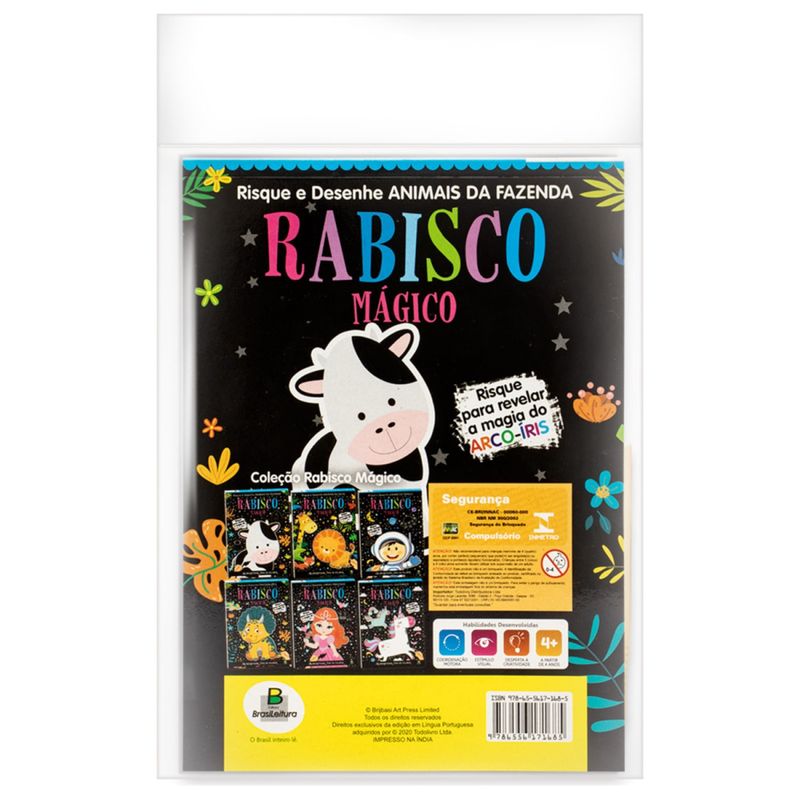 Deixe a imaginação das suas crianças correr solta com o incrível Livro Rabisco Mágico! Este livrinho de riscar e revelar é uma aventura única para os pequenos exploradores. Cada página traz ilustrações encantadoras com uma camada misteriosa que esconde as cores do arco-íris. Com um simples toque do palitinho mágico, as crianças podem revelar as cores que se escondem por baixo, este livro interativo estimula a criatividade e a coordenação motora das crianças garantindo momentos de alegria e aprendizado para seus pequenos aventureiros.
