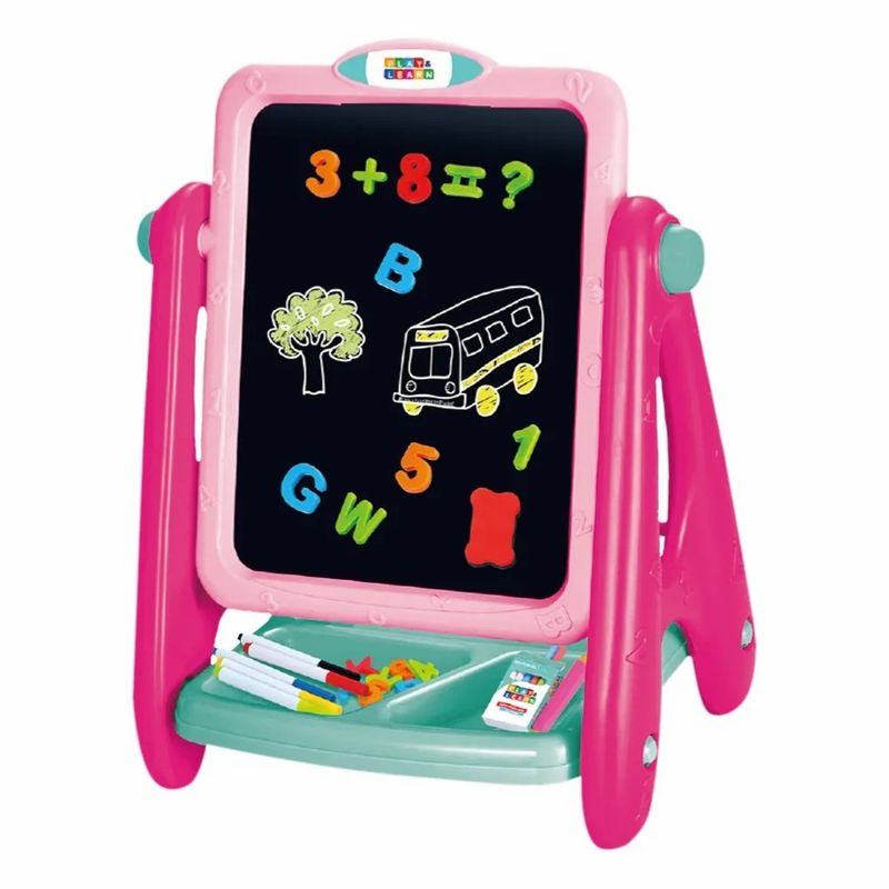 Desperte a criatividade e o aprendizado com a Lousa e Quadro Negro Play & Learn 2 em 1 da Multikids, ideal para crianças a partir de 4 anos. Este quadro versátil possui duas superfícies: uma branca magnética para canetas e letras coloridas e o outro lado é um quadro negro para giz, estimulando o desenvolvimento cerebral, habilidades manuais e a distinção de formas. Perfeito para transformar o momento de brincar em uma experiência educativa, auxiliando na coordenação motora e no exercício da imaginação. Estrutura resistente e compacta, com suporte para armazenar acessórios, garantindo organização e praticidade no uso diário. Invista em um produto que alia diversão e aprendizado de forma prática e envolvente. Principais benefícios: - Duas faces: lousa branca magnética e quadro negro para giz - Estimula criatividade, coordenação e raciocínio lógico - Apoio prático para acessórios e materiais de escrita - Design compacto e resistente, fácil de transportar - Recomendado para crianças a partir de 4 anos Palavras-chave: lousa infantil, quadro negro para crianças, brinquedo educativo, multikids 2 em 1, desenvolvimento infantil. Especificações: Código de Barras: 7908685691021 Restrição de Idade: Não recomendável para menores de 3 anos por conter peças pequenas que podem ser engolidas. Código do Fabricante: BR1767 Aviso: As cores podem variar entre as imagens mostradas acima e o produto. Imagens meramente ilustrativas. Certificado: Certificado pelos Órgãos Autorizados - OCP´S (Organismos de Certificação de Produtos) Peso: 1,250 Kg Faixa Etária: 4+ Material: Plástico Dimensões (AxLxC): 35 x 10 x 48 cm Produto Certificado: 012653/2024 Contém: 1 LOUSA 2 EM 1, 12 GIZ, 5 CANETAS, 52 ÍMAS, 1 APAGADOR Este produto é original? Sim, é um produto original da marca Multikids Imagens meramente ilustrativas. As estampas e cores dos produtos podem variar de acordo com o lote disponível em estoque.