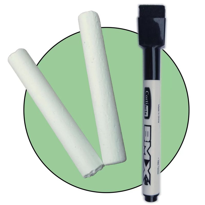 Lados: 1 lado branco magnético (para caneta) + 1 lado verde (para giz)
