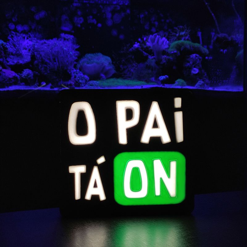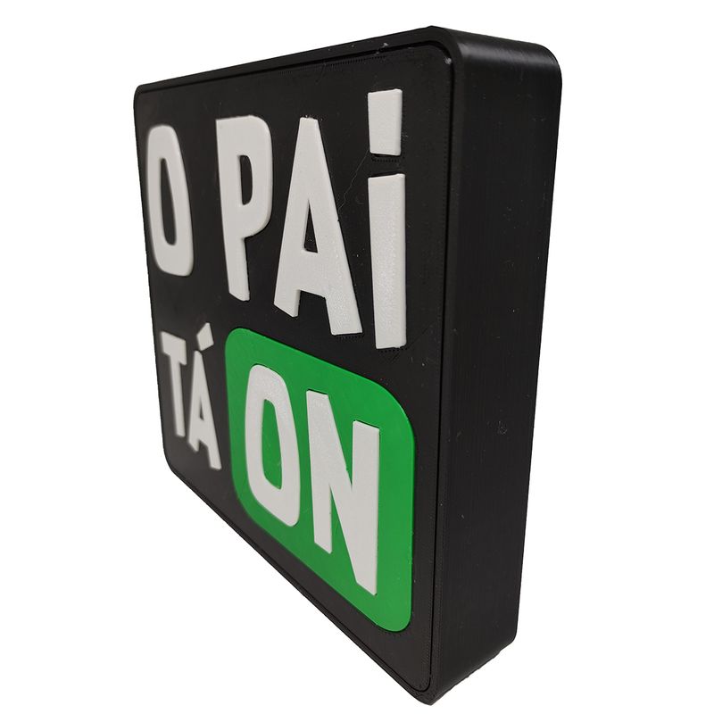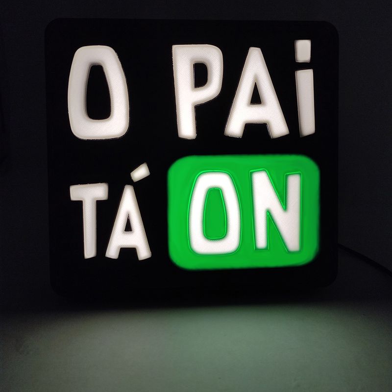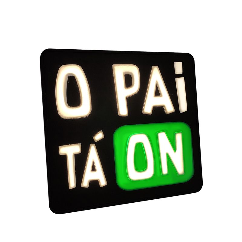 Design: Formato de caixa de luz com a frase "O Pai Tá On".