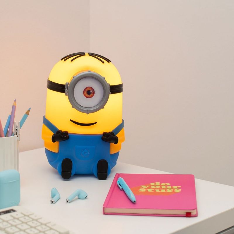 Esse é o Stuart, o minion mais esfomeado, brincalhão e engraçado. Habilidoso em videogames e talvez o mais sincero e inocente de todos os minions. Um tanto rebelde e barulhento e às vezes preguiçoso, preferindo tocar ukulele do que ouvir as regras. Se isso tudo já faz dele uma fofura, imagina agora com essa super habilidade de iluminar? Não espere! Peça o seu agora!Produzida em polietileno no Brasil, a luminária Kevin é bivolt (110/220V), possui cabo de 1,8m com interruptor de mão e utliza lâmpada LED ou fluorescente compacta até 15W.
