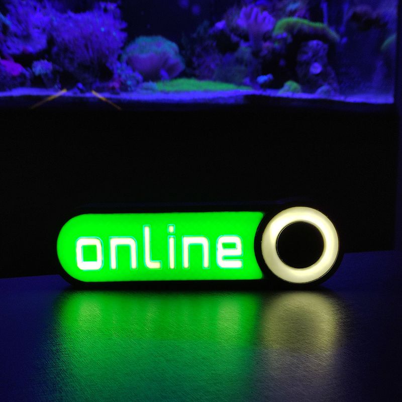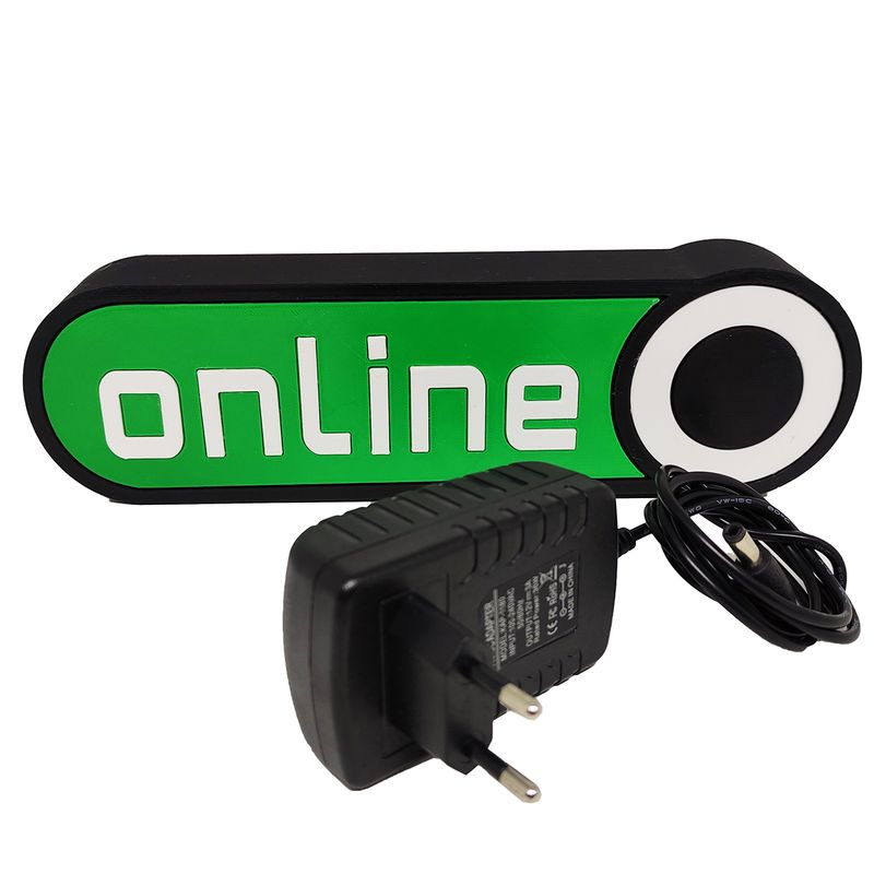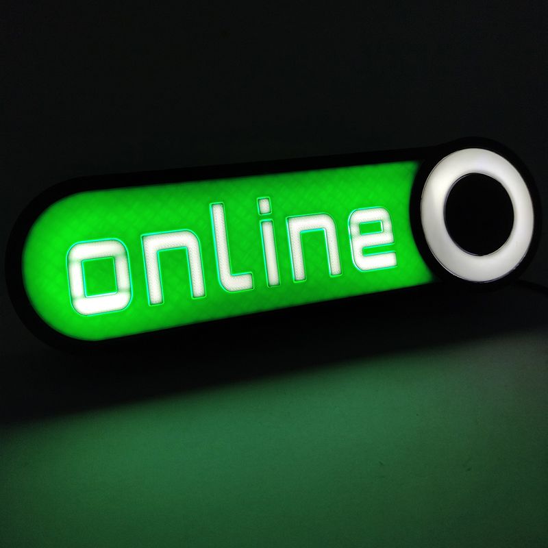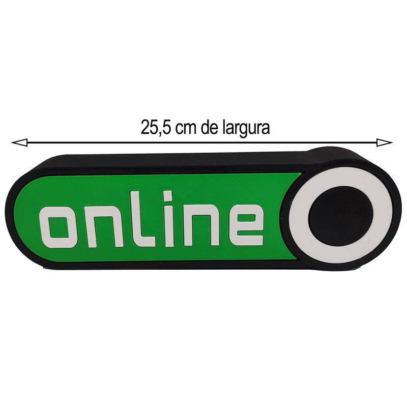 Produzido em impressão 3D, apresenta um design minimalista com o termo “Online”, ideal para mesas de trabalho, quartos ou espaços geek.