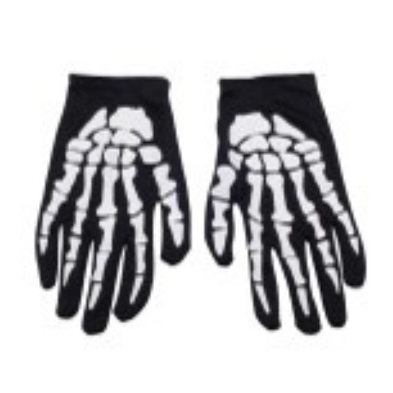 Luva Halloween Esqueleto branco e preto tamanho único.