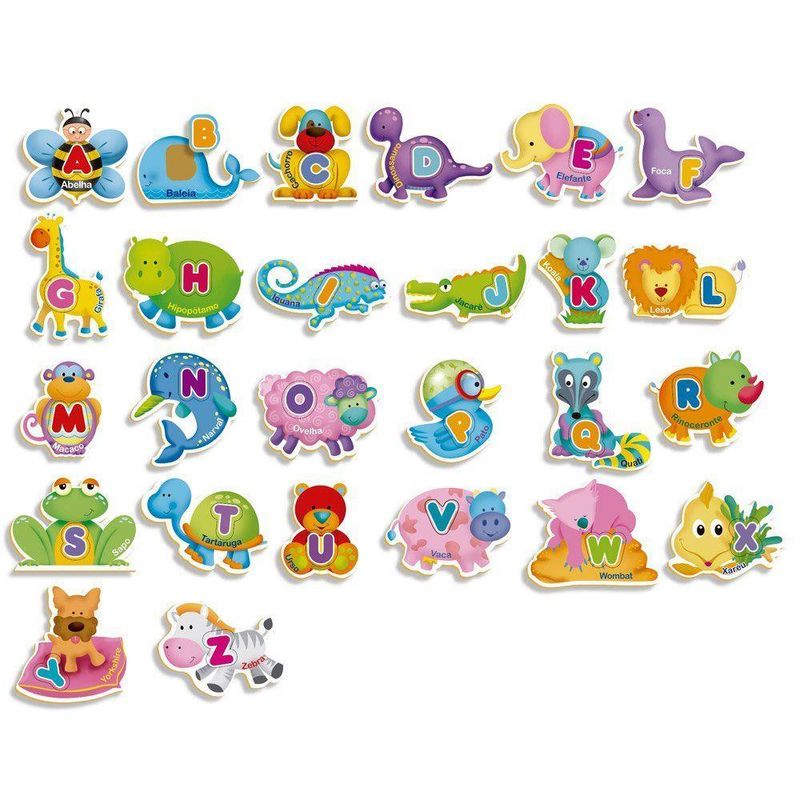 Diferenciais:Ajuda a desenvolver habilidades de alfabetização e reconhecimento de animais.Feito em madeira de reflorestamento, garantindo durabilidade e sustentabilidade.Auxilia a criança a reconhecer e aprender as letras do alfabeto de maneira divertida.Ideal para utilização como apoio didático, facilitando a assimilação do alfabeto e os primeiros passos para a alfabetização.