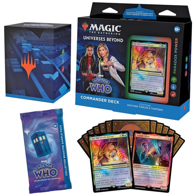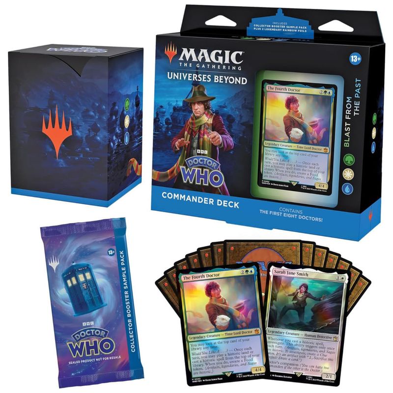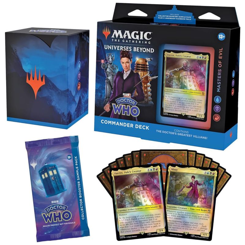 Com os decks Masters of Evil, Blast from the Past, Timey-Wimey e Paradox Power, você poderá reviver momentos memoráveis ??e explorar os personagens e lugares mais marcantes de Doctor Who enquanto enfrenta seus amigos em batalhas épicas de Magic.