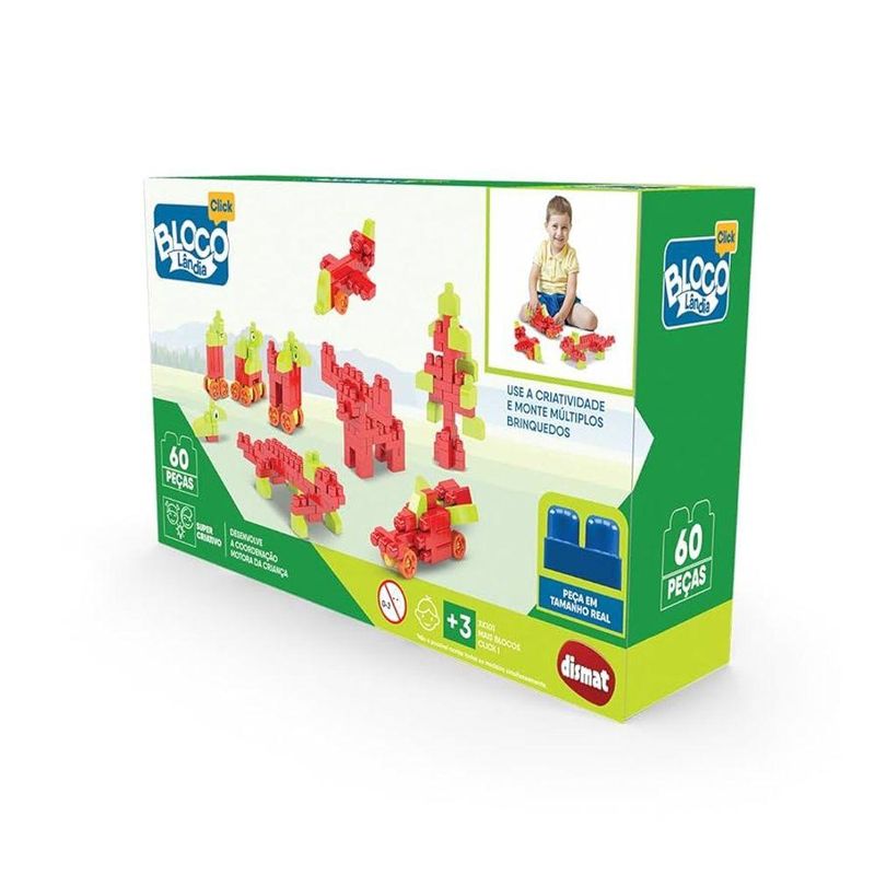 Marca: Dismat;Nome do produto: Mais Blocos Blocolândia Click 60 Peças;Idade recomendada: A partir de 3 anos;Selo Inmetro: CE-BRI/IQB 301312 54541/21-INC012-004;Contém: 60 peças.