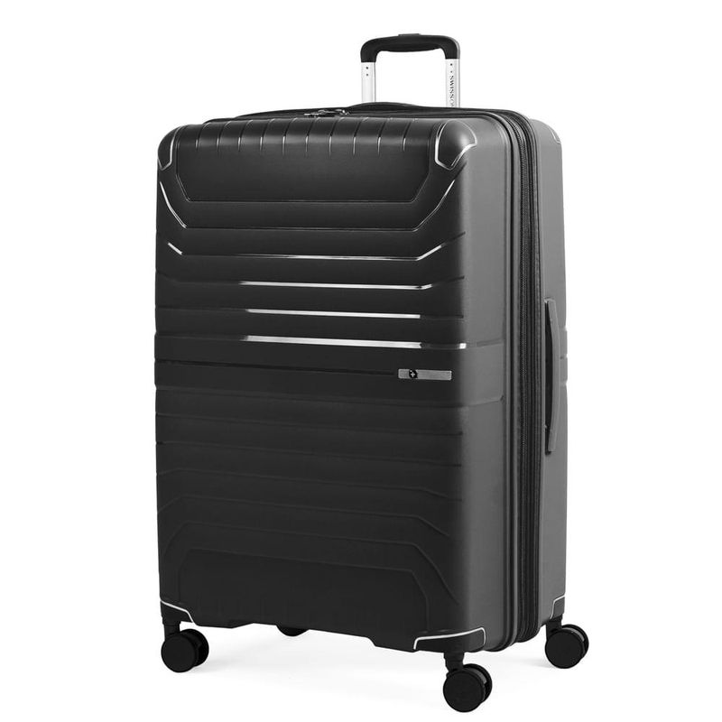 A Mala Grande 32 Kg Polipropileno 4 Rodas Swiss One Onix Preta foi feita para quem busca segurança, durabilidade e um visual sofisticado para viagens a trabalho ou lazer. Com acabamento preto texturizado e design moderno com linhas discretas, ela entrega presença e resistência no uso frequente. O puxador retrátil facilita a condução em aeroportos e rodoviárias, enquanto as rodinhas com giro 360° oferecem mobilidade suave e mais controle em diferentes superfícies. Para aumentar a proteção dos seus pertences, a mala conta com cadeado com segredo integrado, ideal para manter o fechamento mais seguro durante o transporte. Os detalhes de construção, como cantos reforçados e alça lateral para manuseio, tornam a mala ainda mais prática no dia a dia. Se você procura uma Mala Swissone elegante, funcional e preparada para acompanhar viagens com conforto e segurança, esta é uma escolha confiável para compor seu kit de bagagem.