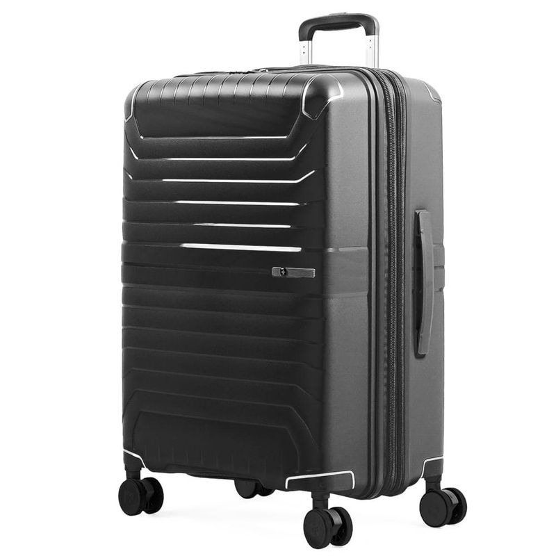 A Mala Média 23 Kg Polipropileno 4 Rodas Swiss One Onix Preta é ideal para viagens de média duração, oferecendo o equilíbrio certo entre capacidade, resistência e segurança. Com design sofisticado em preto e acabamento robusto, ela foi pensada para suportar o ritmo de aeroportos e despachos com mais tranquilidade. A mobilidade fica por conta do puxador retrátil e das rodinhas 360°, que garantem deslocamento mais suave e controle em diferentes superfícies. Para proteger seus pertences, a mala conta com cadeado TSA com senha embutido, que prende os fechos e permite inspeção padrão sem necessidade de arrombamento. E, para reduzir imprevistos no check-in, o modelo traz balança embutida, permitindo conferir o peso da bagagem antes de despachar e evitar excesso.