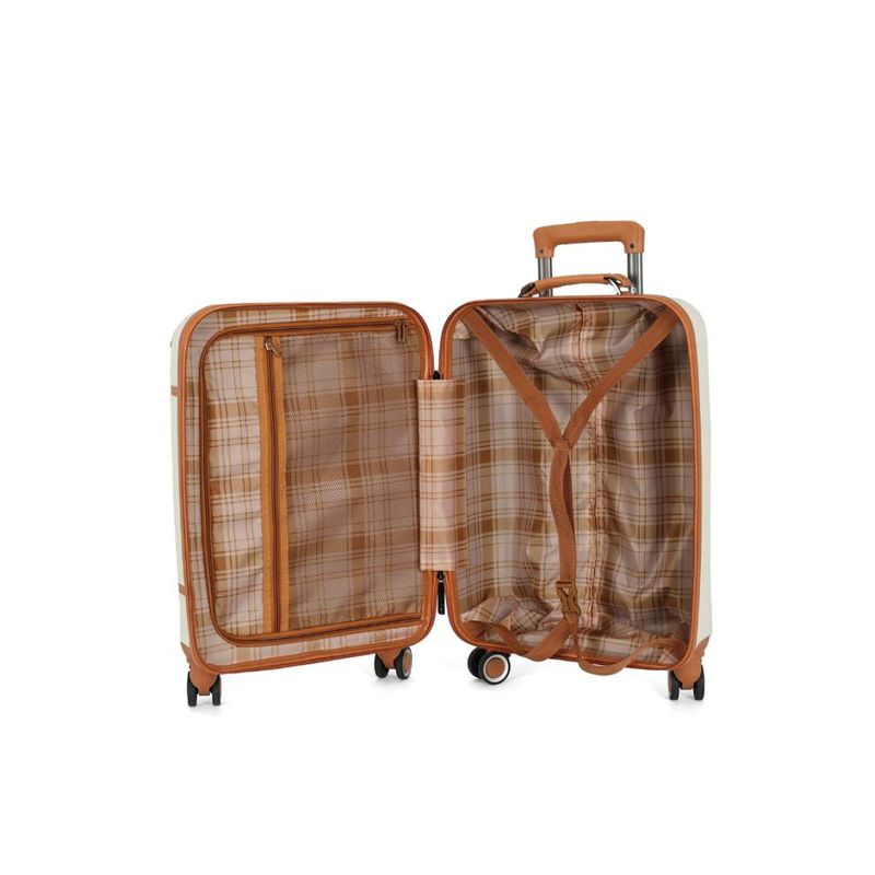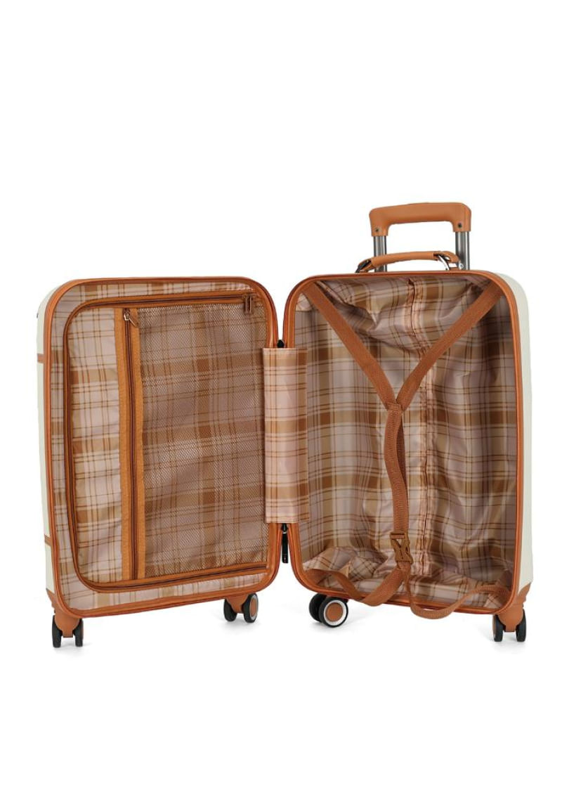 A coleção GASH sempre entrega sofisticação e funcionalidade. A mala de viagem Atena, ideal para viagens, combina design impecável com cores neutras que se adaptam a qualquer ocasião, até mesmo as mais elegantes.Tendo cadeado embutido para maior segurança, detalhes em PU (couro sintético), maior proteção com cantoneiras, forro interno, e logo com detalhe em PU. Rodas duplas com giro 360°, com garantia para defeitos de fabricação, alça de mão com detalhe em PU, fabricada em ABS altamente resistente. Destaques do modelo: MF10516GA Rodas duplas com giro 360° Cadeado embutido Design casual com detalhes em PU (couro sintético) Material ABS altamente resistente Alça retrátil e cantoneiras antiqueda Detalhes internos: Bolso interno com zíper Forro em poliéster resistente Elástico interno para melhor organização Divisória com fechamento em zíper Dimensões disponíveis:Disponível em dois tamanhos, sendo (Bordo e Média) Pequena de bordo: 56 x 36 x 23 cm, peso 2 kg, suporta 10 kg Média: 68 x 45 x 27 cm, peso 2,5 kg, suporta 23 kg Cuidados com a sua mala: Evite utilizar apenas duas rodas ao transportá-la Não exceda o limite de peso recomendado Não utilize produtos químicos ou esfregue com força Manuseie os cursores do zíper com cuidado Objetos cortantes podem danificar o forro