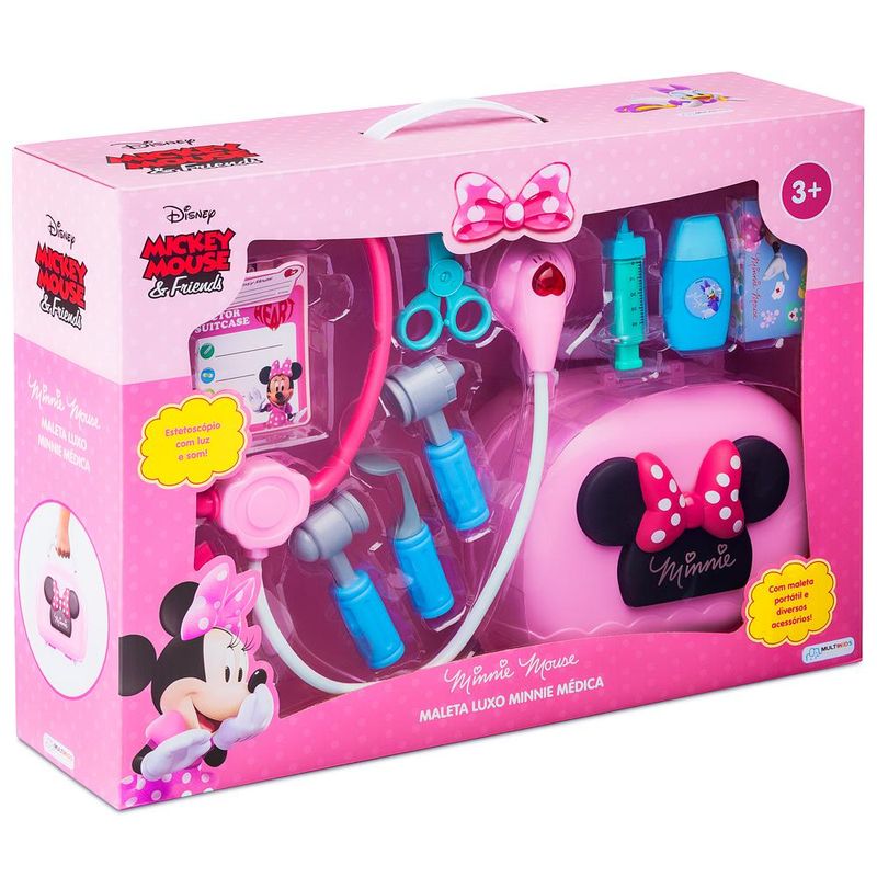 A diversão será garantida com a Maleta Luxo Minnie da Multikids! Junte-se à Minnie, a ratinha mais amada do mundo, e seja sua parceira nos cuidados com os pacientes. A Maleta acompanha diversos acessórios para cuidar e brincar de ser uma médica de verdade! Possui alças que possibilitam o transporte para levar a brincadeira a onde quiser.