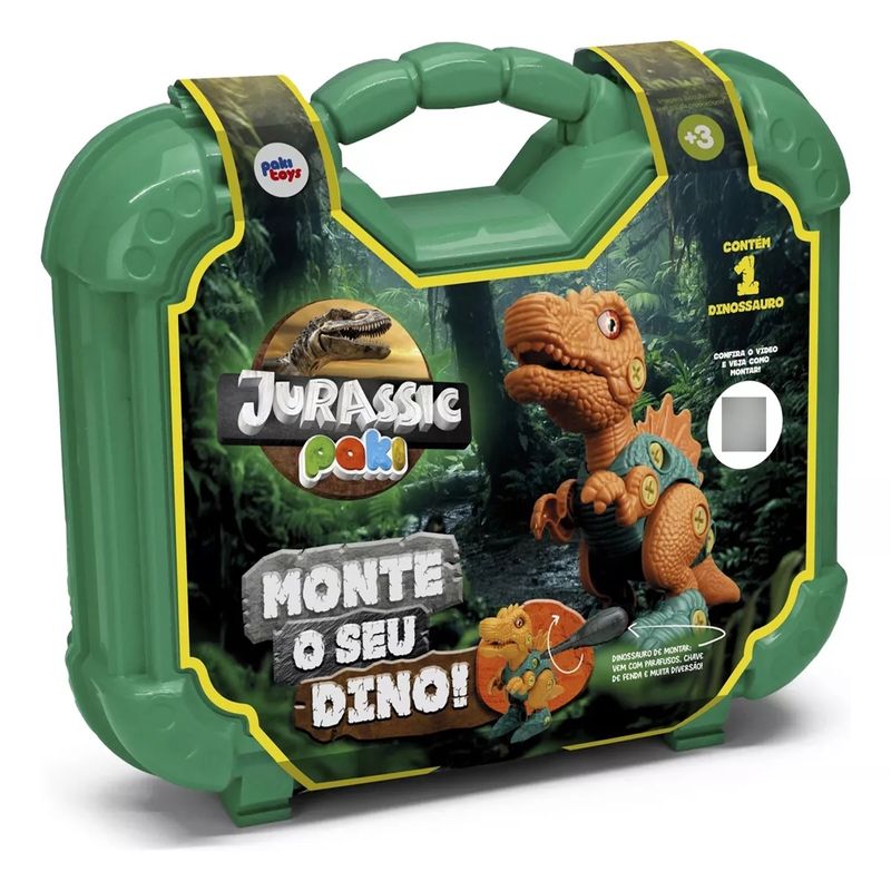 A Maleta Montar Seu Dinossauro Jurassic Paki da marca Pakitoys é um brinquedo perfeito para crianças a partir de 3 anos. Este conjunto inclui uma maleta, um dinossauro e uma ferramenta. O dinossauro é enviado desmontado e de forma variada, proporcionando uma experiência única de montagem e criatividade para as crianças.