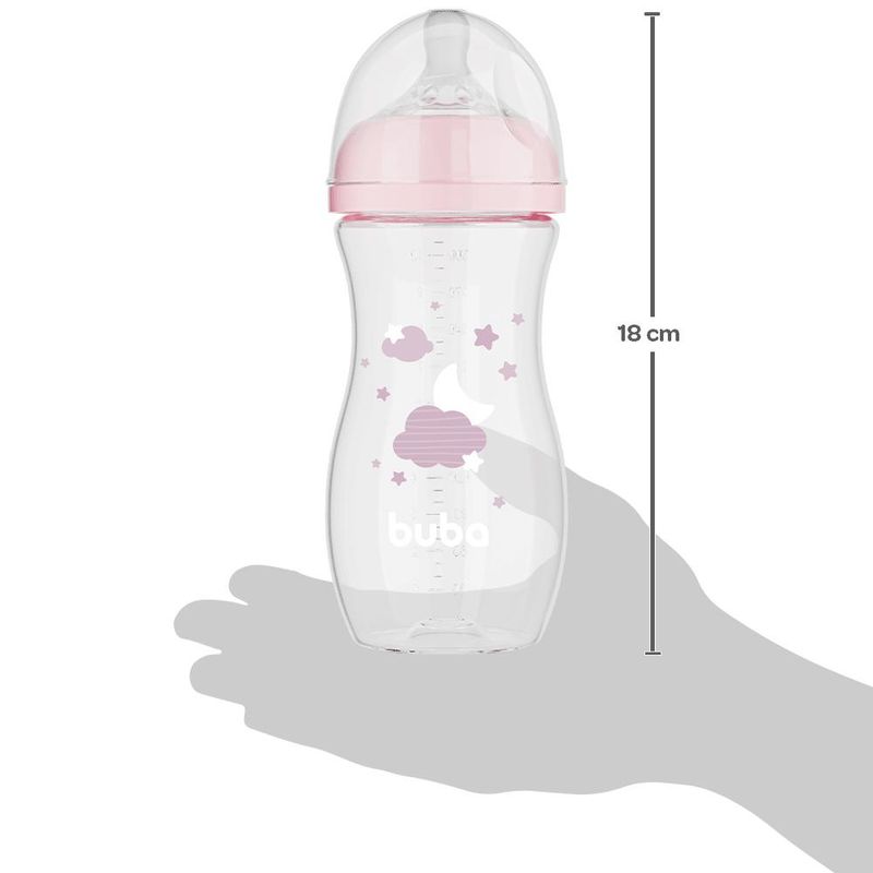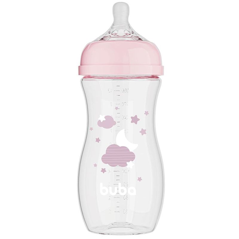 MAMADEIRA BUBA EASY FLOW NUVEM A mamadeira Easy Flor Nuvem Rosa da Buba possui um sistema anticólica que evita gases, possui também bico ultrasoft e é clinicamente testada. CARACTERÍSTICAS DO PRODUTO: Medidas aproximadas: 19x7x7 (AXLXP)