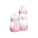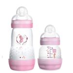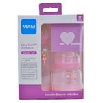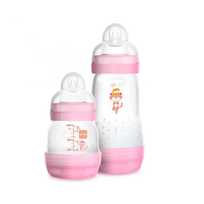 Mamadeira Easy Start Starter Set Rosa - Mam Baby Um lindo conjunto de mamadeiras para o seu pequeno. Este Kit contém: 1 mamadeira Easy Start 130ml e 1 mamadeira Easy Start 260ml. A MAM desenvolveu e patenteou um bico simétrico de silicone ultramacio, o que o torna comprovadamente aceita por 94% das crianças. Ela proporciona menos cólicas e regurgitação, graças à base ventilada que proporciona um fluxo regular sem interrupção. Menos cólica confirmado por 80% das mães. Totalmente desmontável facilitando a limpeza Autoesterilizável em 3 minutos. Idade recomendada: a partir de 0 meses de idade. Selo INMETRO: CE-PUR/IQB 000153 NBR 13793/2012 ? OCP 006. IMPORTANTE: as figuras da mamadeira podem variar.