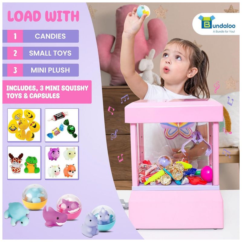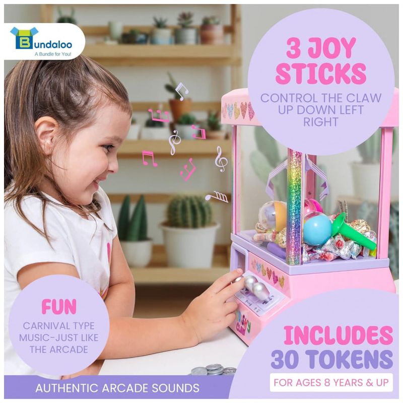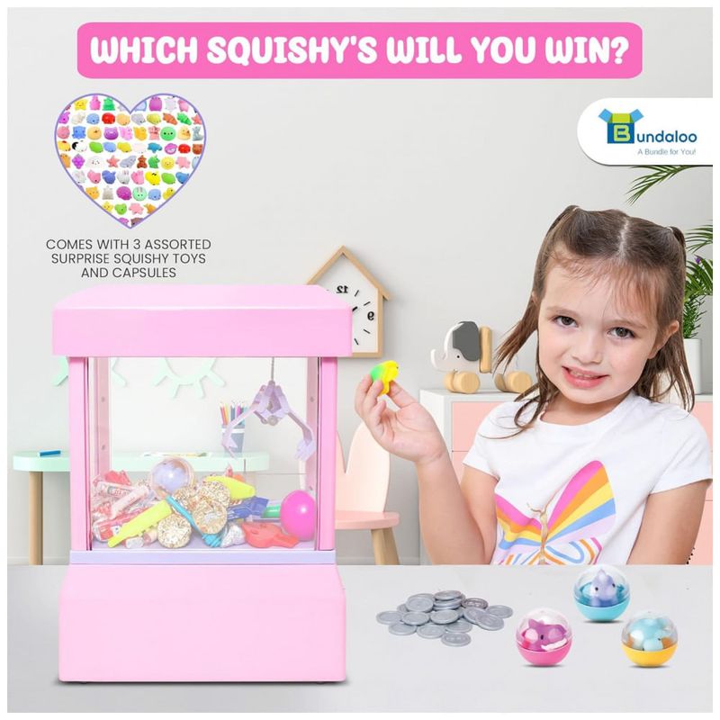 A Máquina de Garra Bundaloo Squishy é um brinquedo encantador em rosa, decorado com adesivos de corações e glitter, que traz muita diversão e nostalgia com sua música retrô. Inclui 3 brinquedos macios surpresa e 3 cápsulas reutilizáveis para adicionar prêmios como doces ou pequenos objetos leves, elevando o desafio a cada jogada. Controlada por 3 joysticks, a garra permite movimentos precisos para capturar os prêmios, estimulando a estratégia e habilidades motoras. Ideal para festas e encontros, proporciona momentos de alegria e competição saudável entre crianças e adultos. Funciona com baterias novas, sendo importante seguir as instruções para melhor desempenho. Um presente perfeito que une diversão tátil, música e interação.