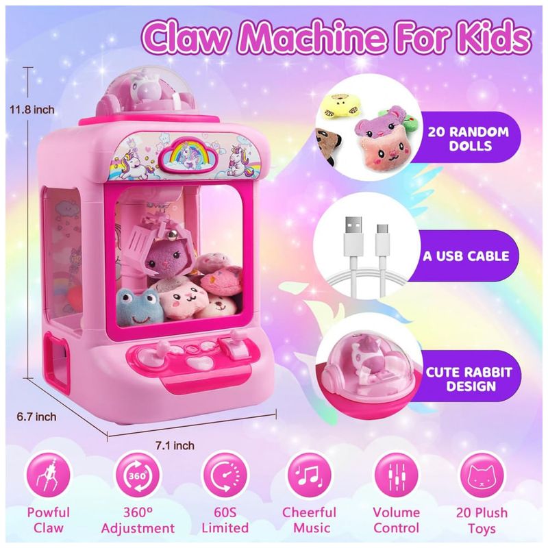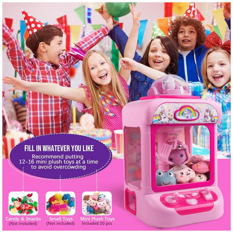 A Máquina de Garra Unicornio TingingYuli transforma qualquer ambiente em um verdadeiro mini arcade encantado. Projetada especialmente para crianças, esta versão rosa do clássico jogo de arcade permite que os pequenos testem suas habilidades de coordenação motora enquanto se divertem. A máquina vem com 20 mini pelúcias aleatórias e oferece a possibilidade de acrescentar outros prêmios como doces, gomas ou surpresas de Páscoa, tornando cada jogada única. Equipado com luzes cativantes, sons divertidos e música encantadora, o brinquedo proporciona uma experiência de jogo realista, enquanto o volume pode ser ajustado ou totalmente silenciado para maior conforto. O joystick duplo permite que os jogadores movimentem a garra 360° com precisão, desenvolvendo atenção, estratégia e habilidades de coordenação olho-mão. Ideal para festas de aniversário, encontros familiares ou momentos de lazer em casa, é uma opção divertida tanto para crianças quanto para adultos, oferecendo competição saudável e entretenimento envolvente.