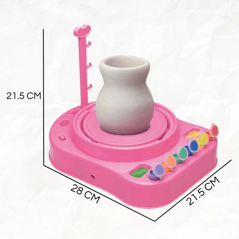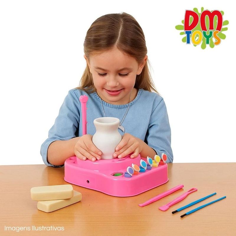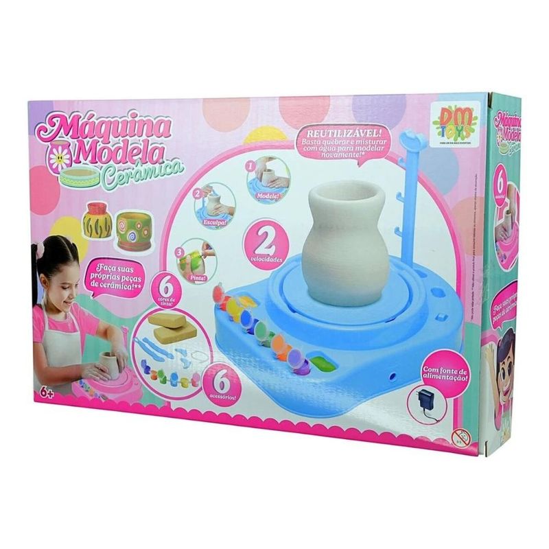 AVISO: PRODUTO COM VARIAÇÃO DE COR VERIFIQUE SE ESCOLHEU A COR CORRETA ANTES DE EFETUAR A COMPRA, VARIAÇÃO ENTRE ROSA E AZUL. IMAGENS MERAMENTE ILUSTRATIVAS!!! Brinque usando a sua criatividade! Faça suas próprias peças de cerâmica! Com 06 acessórios. Idade: Acima de 03+ anos Contém: 01 Máquina para modelar cerâmica 02 Pacotes com 400g de massa cerâmica cada (peso total da massa: 800g) 01 Ferramenta para cortar a cerâmica 02 Ferramentas de esculpir 01 Suporte para decorar e esculpir 02 Pincéis 06 Potes com tinta acrílica 01 Fonte de alimentação OUTRAS INFORMAÇÕES: Máquina: Plástico ABS Tintas Cerâmica