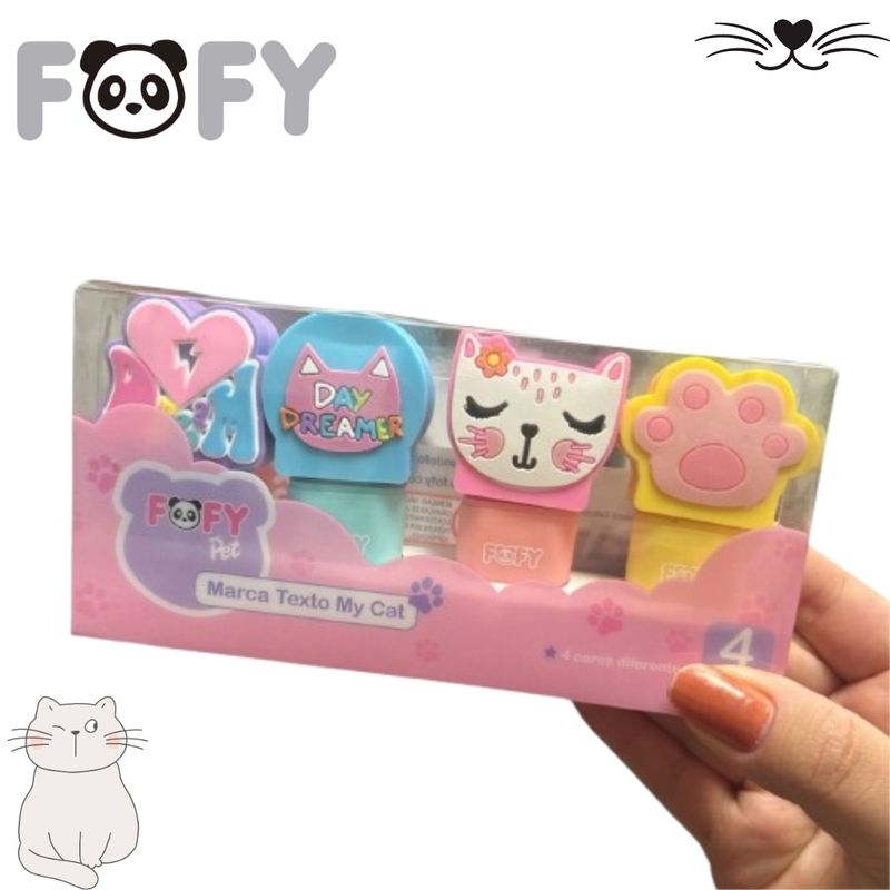 Transforme seus estudos e anotações em uma experiência divertida e encantadora com o Marca-Texto My Cat 4 Cores da FOFY.