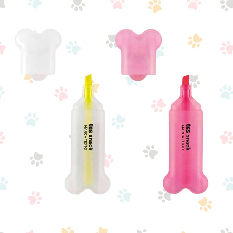 Quanto mais fofinho, melhor! Produtos de bichinhos são eternamente populares e estão em toda parte. A coleção Pets promete ser a nova sensação para os amantes de animais. O marca-texto Snack tem um formato adorável de ossinho e uma ponta chanfrada, permitindo a criação de traços finos e grossos. Vem em uma cartela com as cores rosa e amarelo.