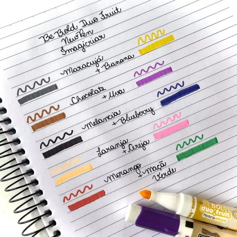 Quer adicionar um toque de frescor e diversão ao seu trabalho ou estudo Apresentamos o Marcador Be Bold Duo Fruit Duas Pontas New Pen, o mais recente lançamento da Newpen que vai revolucionar a forma como você destaca suas ideias e notas.