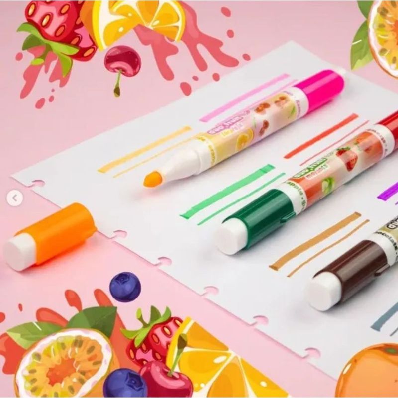 Com 10 cores vibrantes e dois deliciosos aromas de frutas em cada marcador, essa ferramenta é a escolha perfeita para quem busca originalidade e praticidade.