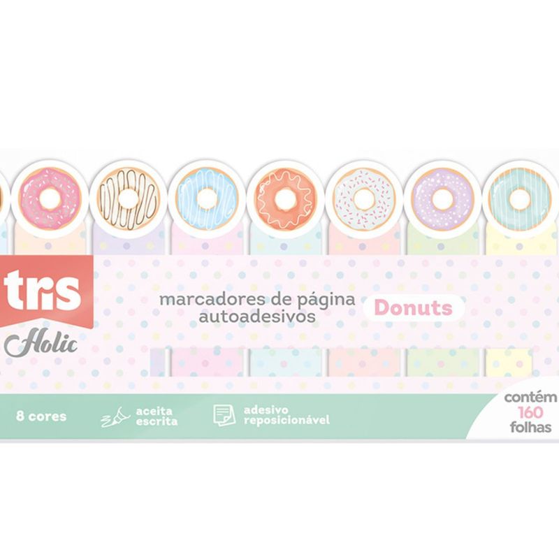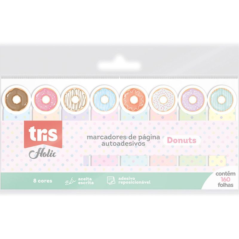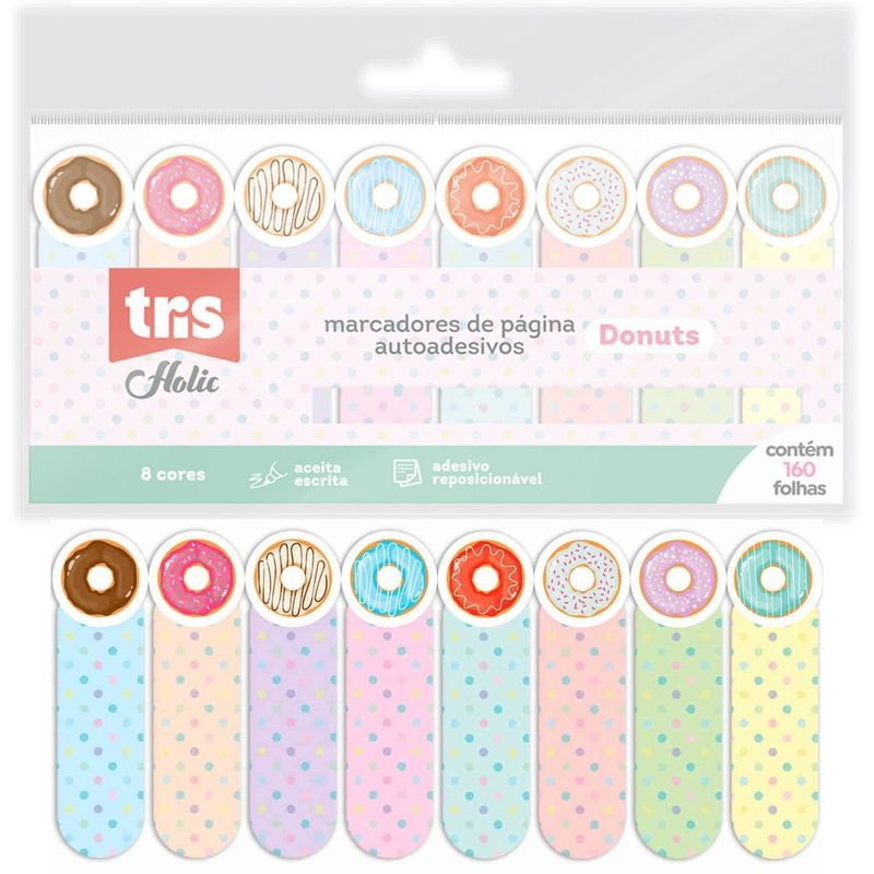 MARCADOR DE PÁGINA AUTOADESIO HOLIC FOFURICES - DONUTS - 8 CORES - 160 FOLHAS - TRIS