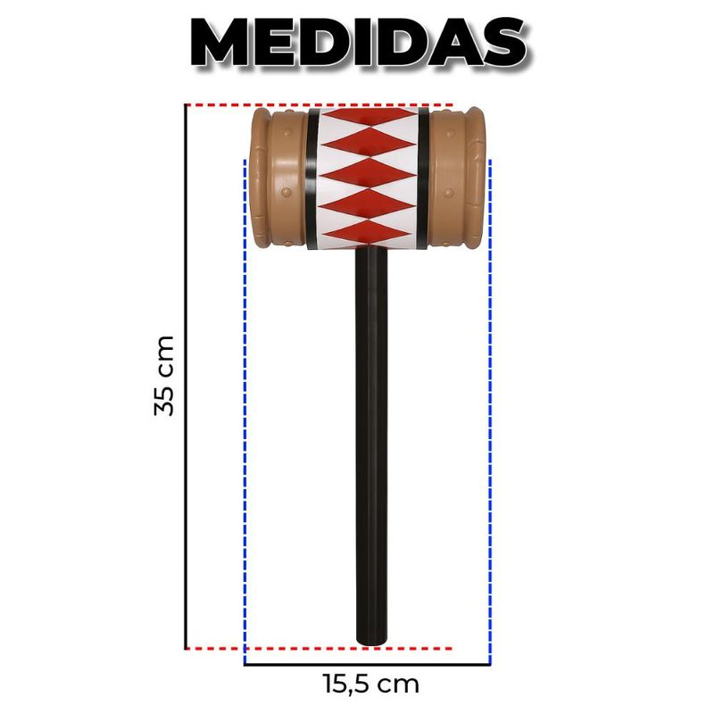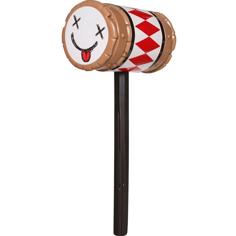 Leve e seguro, este martelo é feito de 100% PVC, tornando-o perfeito para crianças e adultos levarem para o Halloween, Carnaval ou eventos de cosplay. O design conta com o clássico padrão de losangos vermelho e branco nas laterais e um divertido rosto sorridente e "nocauteado" em uma das pontas, capturando toda a essência caótica e divertida da personagem.