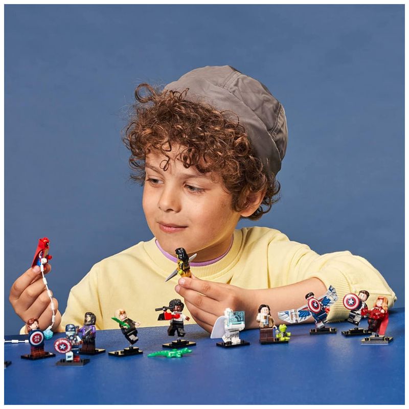 Full Set of 12x LEGO Collectable Minifigures Includes TChalla Star Lord, Zombie Hunter Spidey, Monica Rambeau, Sylvie, Scarlet Witch, Winter Soldier, Vision Captain Carter, Gamora, Loki, Zombie Captain America, Captain America Supplied in bag, snipped to identify character, then resealed Small collectable item, not necessarily suitable as a childs gift