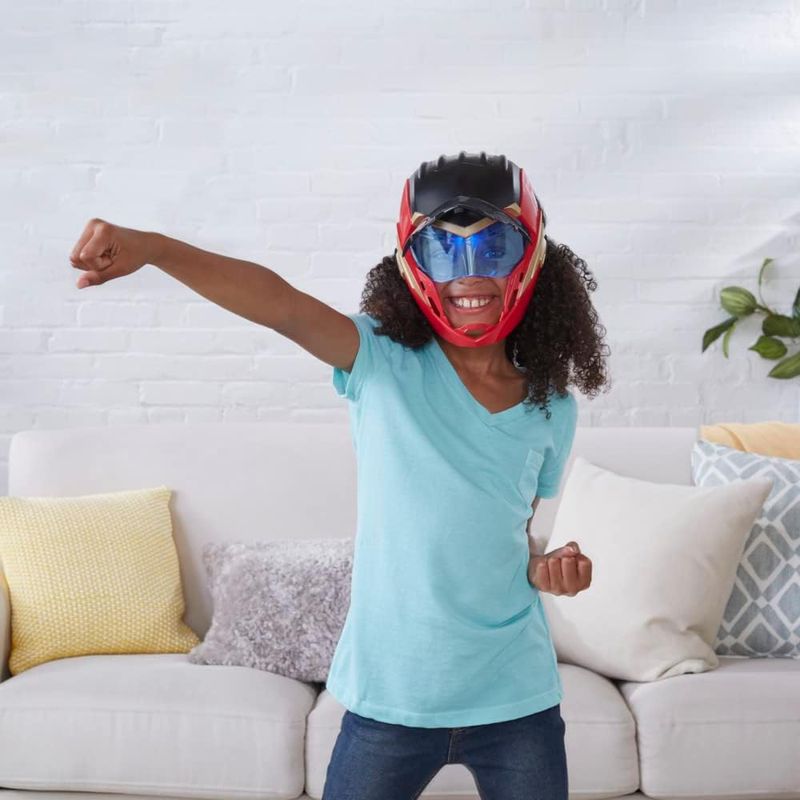 FACE ILUMINADA: Usar a máscara fechada ou abrir a placa frontal para acionar a tela iluminada da máscara. Crianças de 5 anos ou mais podem imaginar que estão preparadas para a batalha como Ironheart