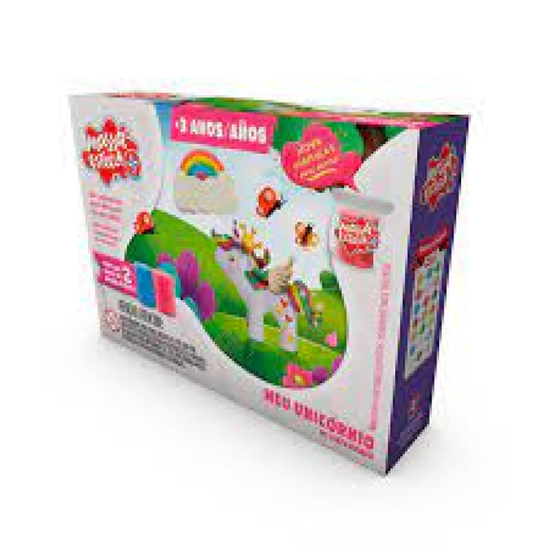 Contém: 1 Forma de Unicórnio, 1 Forma de Acessórios e 1 Saco de Massa Estrela e 50g.