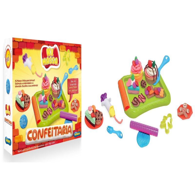 Massinha de Modelar Ki Massa - ConfeitariaMarca: SunnyExplore sua criatividade com a nova linha de comidas da Ki Massa, seja o melhor confeiteiro que conseguir. São 4 potes de massinha com 56g em cada, para modelar e se divertir montando uma café da manhã delicioso da linha Ki Massa.Conteúdo: 4 massinhas de 56g cada• Idades de 3 anos ou mais• Os produtos e as cores podem variar.• Não deve ser comido.• Aviso aos pais: contém trigo.