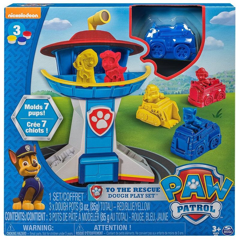 quando Recebem Uma Chamada de Resgate Na Torre, É Hora de Entrar em Ação! Escolha Entre 3 Cores de Massa e Molde Seus Filhotes com 7 Moldes de Personagens Diferentes! Basta Pressionar a Massinha Contra a Parte Inferior Dos Veículos ou Contra As Laterais e Na Plataforma da Torre Para Obter Moldes de Cachorrinhos.