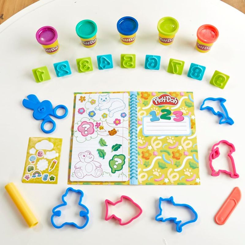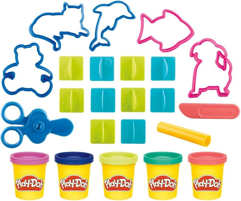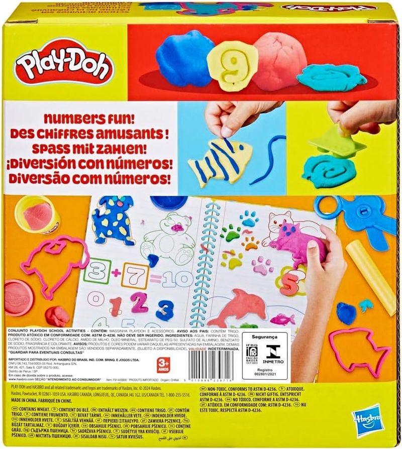 Imagine Atividades Divertidas de Sala de Aula em Casa com o Conjunto de Atividades Escolares! o Tapete de Dupla Face Parece Um Caderno Para Permitir Que Eles Explorem Combinações, Números e Suas Próprias Ideias Criativas, Ao Mesmo Tempo Que Ajuda a Manter a Massinha Play-Doh Fora da Mesa. 10 Carimbos de Números, 5 Cortadores de Animais e 3 Acessórios Clássicos Play-Doh Oferecem Muitas Maneiras de Participar de Atividades de Contagem e Animais com 5 Cores de Massinha de Modelar.