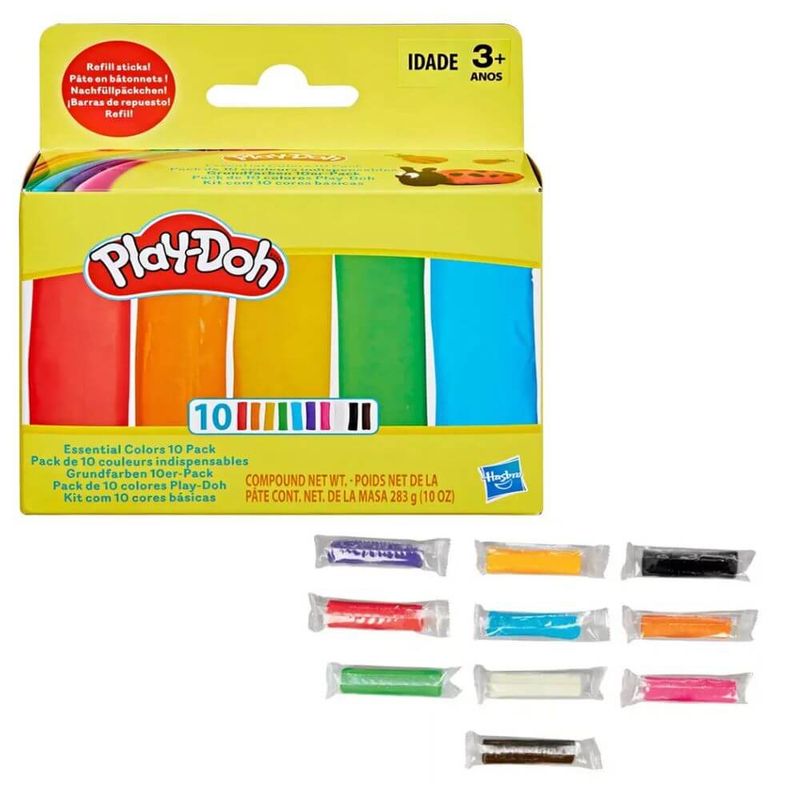 O Kit de 10 cores essenciais Play-Doh é um ótimo refil para outros brinquedos Play-Doh! Com 10 bastões de cores clássicas e vibrantes embalados individualmente, as crianças podem imaginar muitas criações Play-Doh malucas, maravilhosas e completamente personalizadas!
