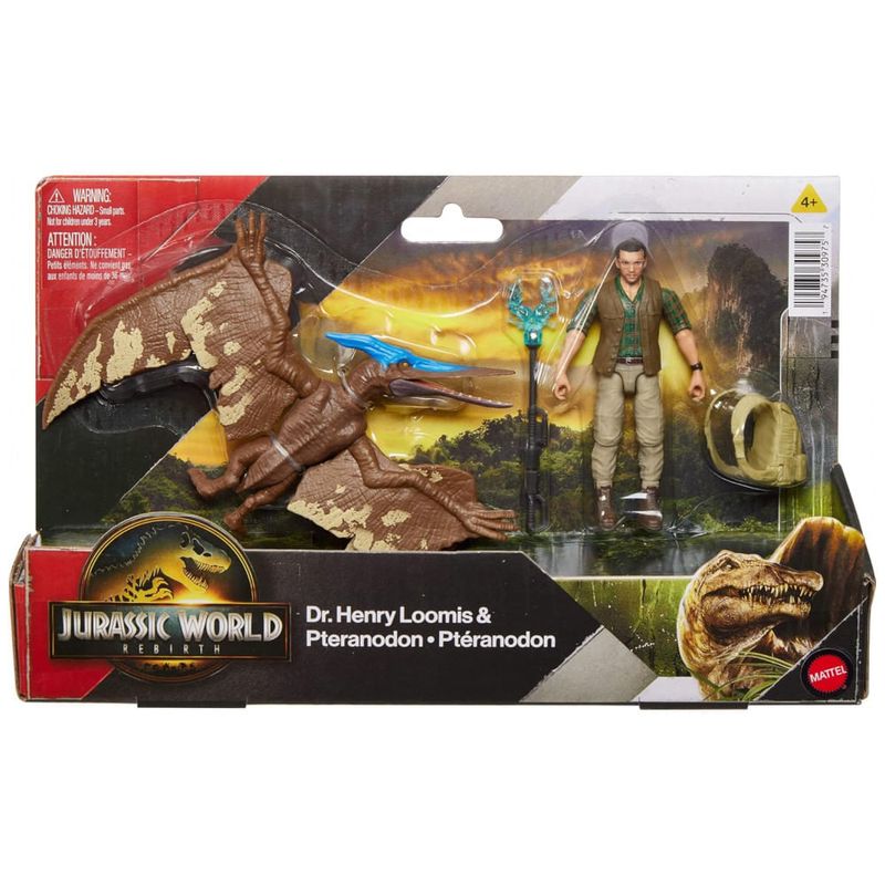 O pack Mattel Jurassic World Rebirth Human & Dinosaur Figure Pack reúne a figura do paleontólogo Dr. Henry Loomis e um Pteranodon articulado na escala 3,75", com design inspirado nas cenas do filme Jurassic World Rebirth. As esculturas e cores foram desenvolvidas para reproduzir o visual do personagem (com semelhança ao ator Jonathan Bailey) e do Pteranodon de forma alinhada ao conteúdo do longa.?