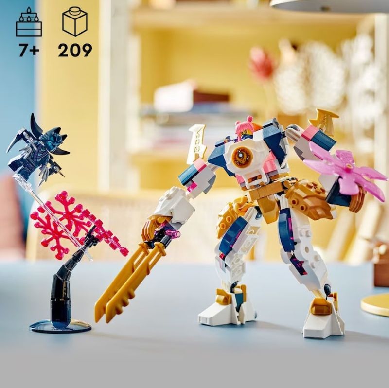 A figura do robô personalizável combina com 2 outros robôs, que são vendidos separadamente • Os fãs de Ninja podem misturar e combinar peças para construir seu próprio modelo de traje mecânico • O brinquedo de dramatização inclui 2 minifiguras: Sora e um guerreiro com garras e máscara de lobo • A minifigura de Sora vem com 2 acessórios para espadas katana • Ideia de presente ninja para crianças a partir de 7 anos para desfrutarem de brincadeiras independentes • Confira outros conjuntos de brinquedos de ação (vendidos separadamente) na linha LEGO® NINJAGO® • Os conjuntos LEGO® NINJAGO® permitem que as crianças escapem para um mundo de ação de fantasia • Conjunto ninja de 209 peças com brinquedo mecânico com mais de 16 cm de altura