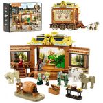 Conjunto de blocos de montar temático medieval com carroagem de trupes itinerantes, com estrutura modular que permite montar e exibir o modelo em diferentes configurações de palco e viagem. A composição em plástico e o sistema de iluminação integrado com pontos de luz e tiras LED destacam a cenografia e os detalhes do cenário, voltados para montagem e exposição por usuários experientes.?