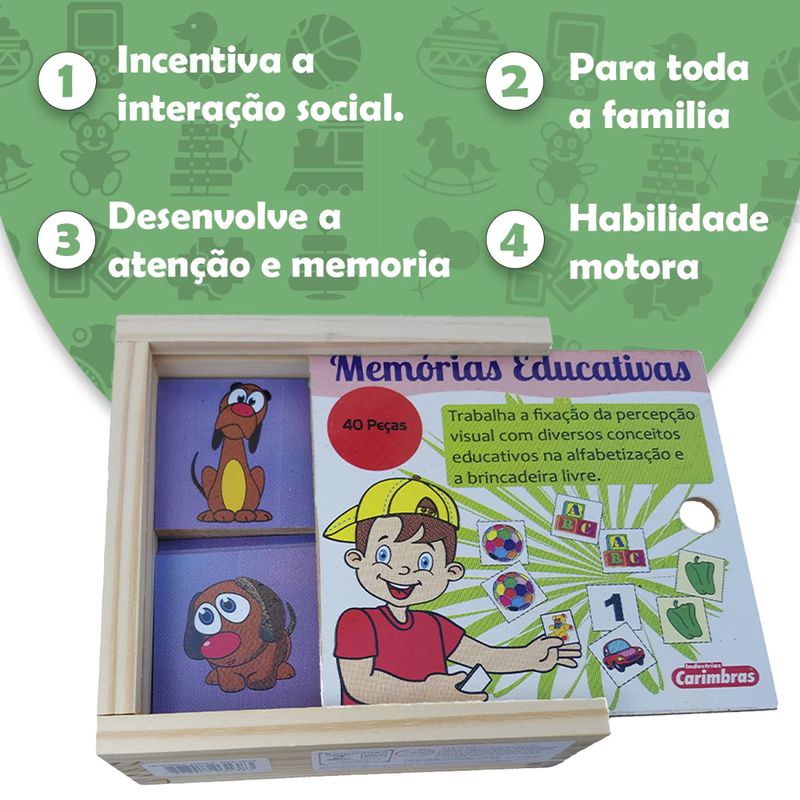 Acondicionado em uma linda caixa de madeira com tampa, esse jogo da memória vai proporcionar muita diversão e aprendizado para as crianças!