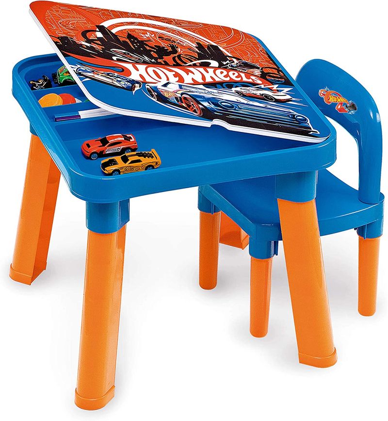 Mesa Com Cadeira Hot Wheels - Fun Com a Mesinha da Hot Wheels a criançada vai ficar muito mais animada para brincar e fazer atividades! Ajuda o desenvolvimento do aprendizado de forma divertida! A tampa da mesa abre, revelando um compartimento secreto para guardar objetos, os pés desmontam, facilitando o armazenamento e transporte do produto. Ainda acompanha uma cartela com adesivos personalizados da Hot Wheels para a criança se divertir! Ideal para auxiliar no desenvolvimento da imaginação, incentivando a descoberta e estudo da criança.