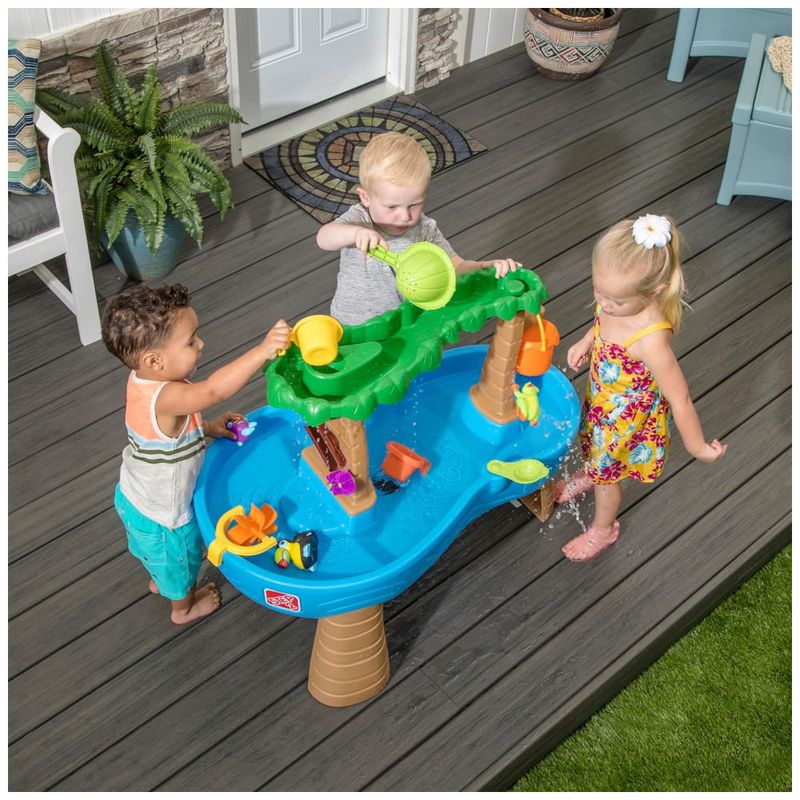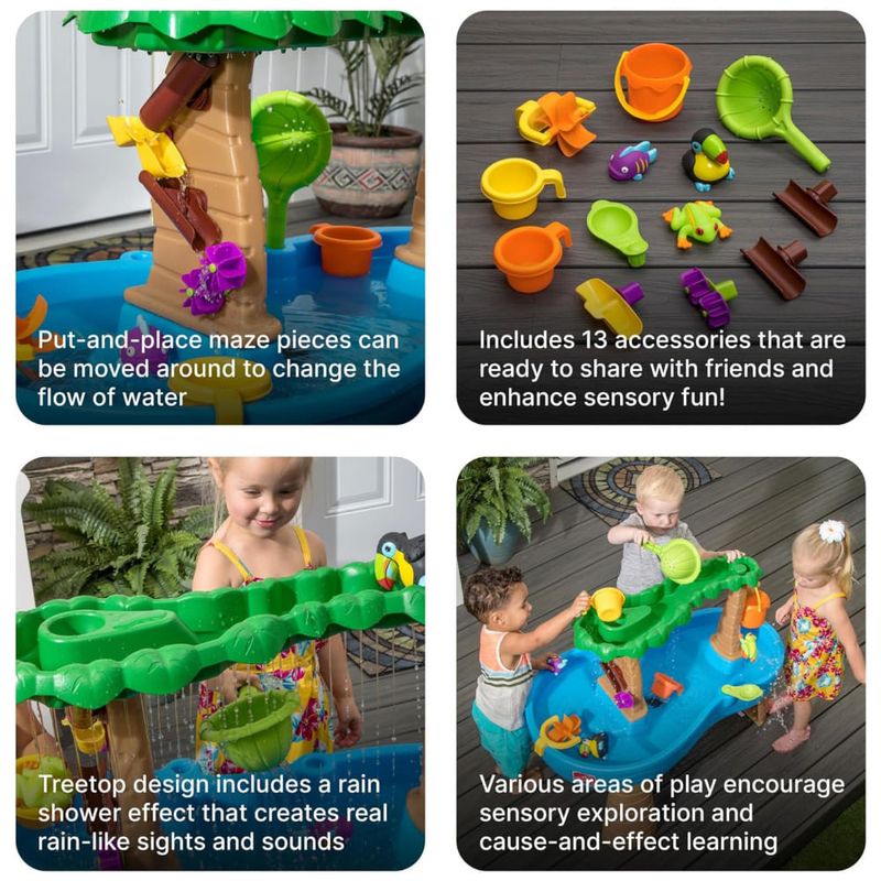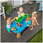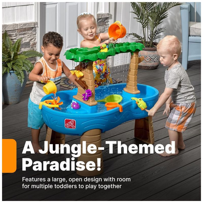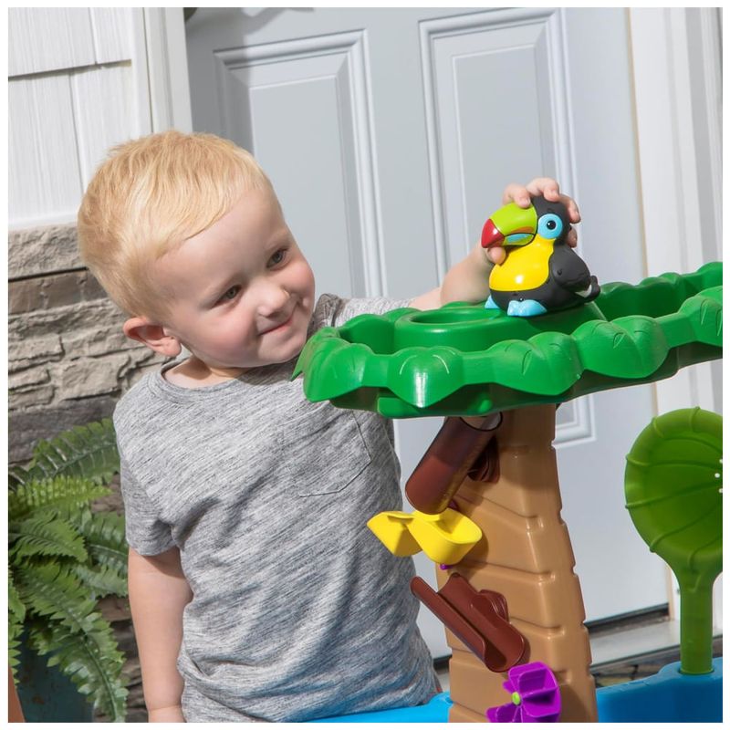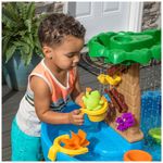 DIVERSÃO AO AR LIVRE: A mesa de atividades com água é perfeita para crianças brincarem, derramarem e explorarem, proporcionando uma experiência interativa com detalhes moldados da floresta tropical para estimular a imaginação das crianças.