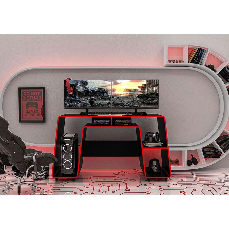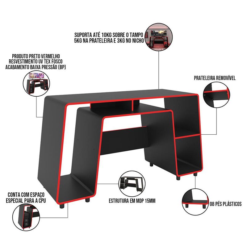 Organização, funcionalidade e muita diversão definem a Mesa Para Computador Notebook Pc Gamer London P01 Preto Vermelho - Lyam Decor! Com ótimo design proporciona conforto e beleza de maneira muito singular, seus nichos e compartimento para CPU acomodarão super bem seu setup gamer permitindo momentos de lazer e distração. Produzida com excelentes materiais é perfeita para horas jogando, imerso nos estudos ou trabalhando, seja para seu quarto, escritório ou home office.