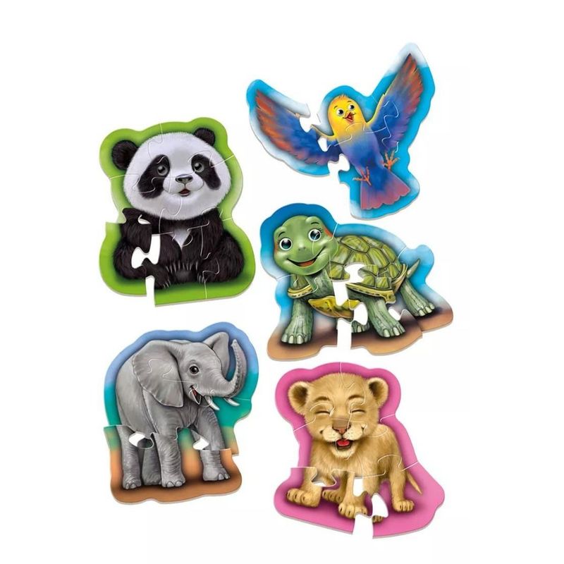 Estes são os primeiros quebra-cabeças para a criança, idealizado para iniciá-la nessa atividade envolvente em qualquer idade. Composto por 5 imagnes, cada um, com diferentes quantidades e tamanhos de peças, oferecendo um desafio progressivo para a criança. Além de agradável, a montagem dos quebra-cabeças estimula a percepção visual de cores e de formas e desenvolve a coordenação motora da criança.