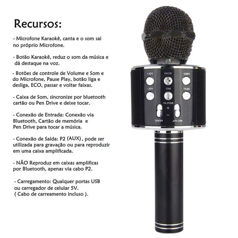 Este microfone é equipado com a tecnologia Bluetooth, permitindo que você conecte facilmente a qualquer dispositivo compatível. Assim, você pode cantar junto com suas músicas favoritas, podcasts ou até mesmo aulas de canto online. Além disso, o microfone é alimentado por corrente direta, garantindo um desempenho estável e confiável.