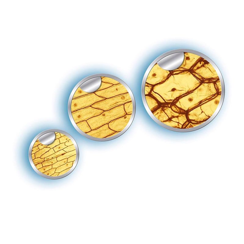 Dicas de Uso:Explore diferentes amostras, como folhas de plantas, tecidos, insetos e objetos do cotidiano para descobrir seus detalhes microscópicos.Utilize os cartões científicos ilustrados para aprender mais sobre os diversos organismos e estruturas observadas.Crie experimentos simples para investigar e registrar suas descobertas.