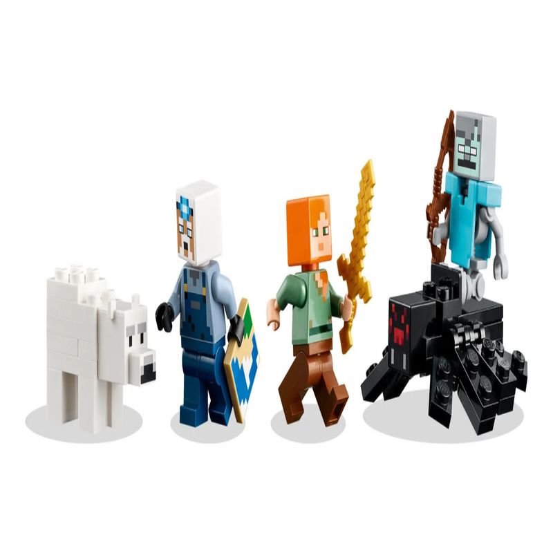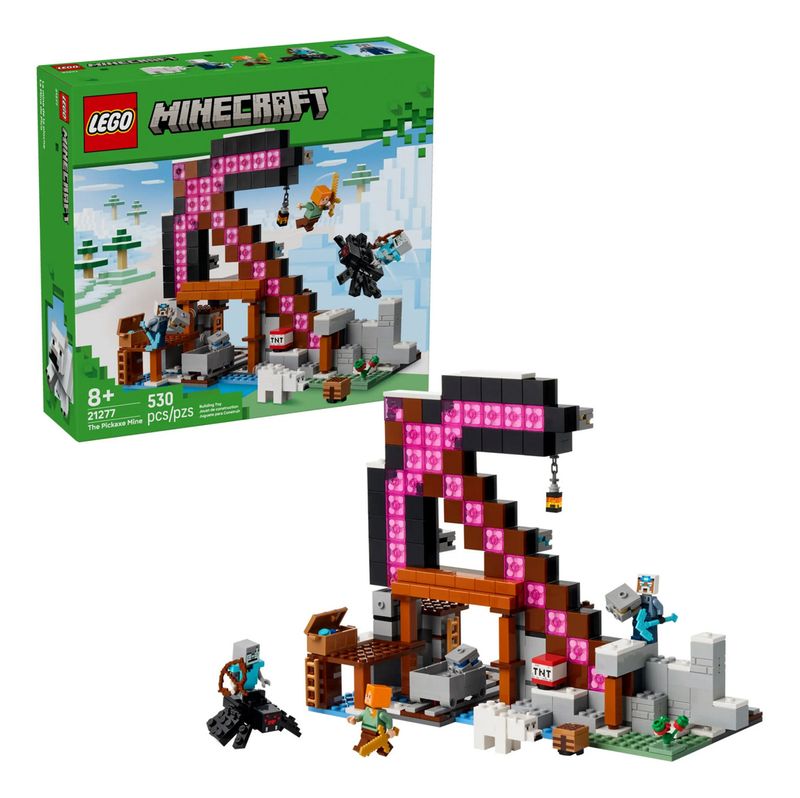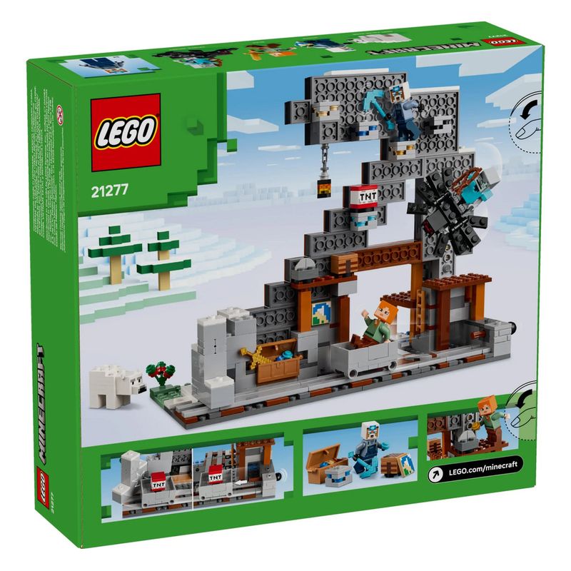 O conjunto inclui 3 minifiguras: o popular personagem dos games Alex, um mineiro e um jóquei-aranha perdido. Há também uma figura de um filhote de urso polar na superfície da mina. As crianças extraem minério de Minecraft da mina, carregam-no em um carrinho de mina e o transportam pelos trilhos para ser armazenado em um baú. O carrinho pode ser enchido com TNT e lançado contra a parede de rocha, explodindo através do outro lado. E quando as aventuras de mineração do dia chegam ao fim, a picareta de brinquedo LEGO Minecraft também funciona como uma impressionante peça de exibição. Para maior diversão digital, os construtores podem ampliar, girar modelos em 3D e acompanhar seu progresso usando o aplicativo intuitivo LEGO Builder. Contém 530 peças.