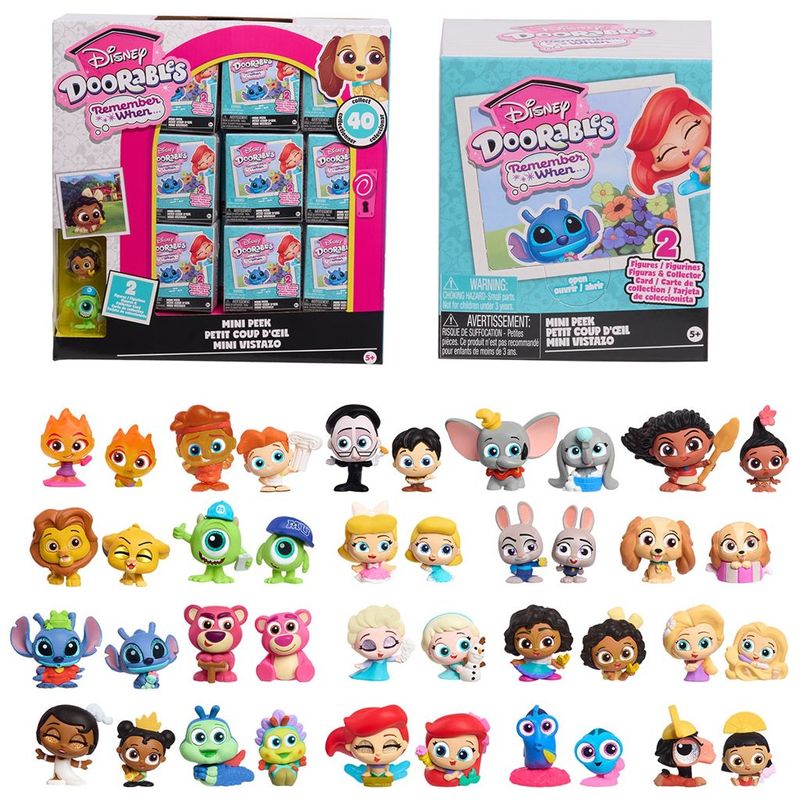 O conjunto Disney Doorables Lil' Moments inclui 2 figuras adoráveis e 1 foto surpresa de personagem Disney. Cada boneco grande, com 3,8 cm, representa personagens memoráveis, enquanto os pequenos, de 1,65 cm, trazem versões mais jovens desses personagens, estimulando a criatividade das crianças. A foto surpresa pode ser acoplada no fundo da câmera Disney Doorables Lil' Moments (vendida separadamente), criando uma exibição encantadora. Com 40 bonecos disponíveis, há muitas possibilidades de brincadeiras, trocas e decorações, trazendo ainda mais magia e diversão para o dia a dia.